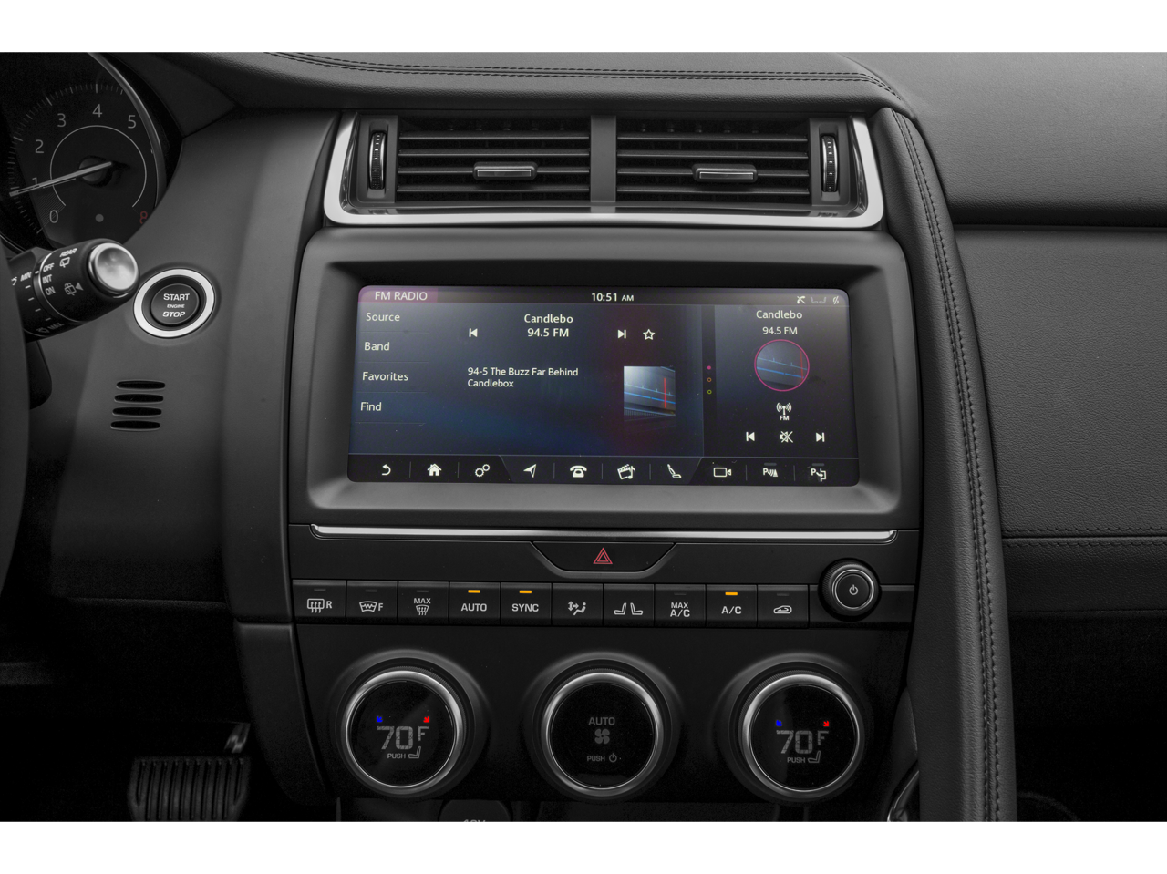- Radio: Jaguar Sound System -inc: 10" Touch Pro touchscreen, Apple CarPlay, Android Auto, dynamic volume control, voice control and Bluetooth® connectivity